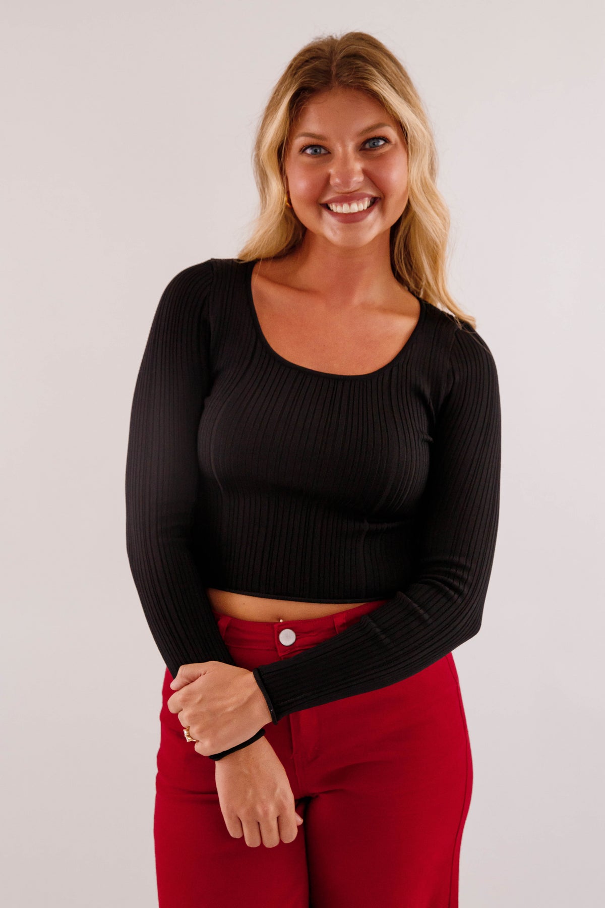 Wrap yourself in coziness with our Sweet Sentiments Ribbed Top! The sweater's ribbed knit adds texture and warmth, while the scoop neck and long sleeves offer a flattering fit. This cropped top is perfect for any occasion, pairing perfectly with high-waisted bottoms for a playful look.