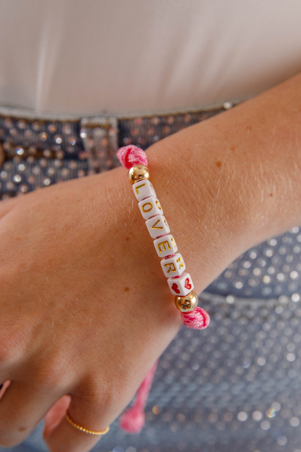 Add a splash of fun to your wrist with this Friendship Bracelet-Lover! White block beads shout out "Lover" in gold letters, while the slip knot lets you adjust it just right for your perfect fit.