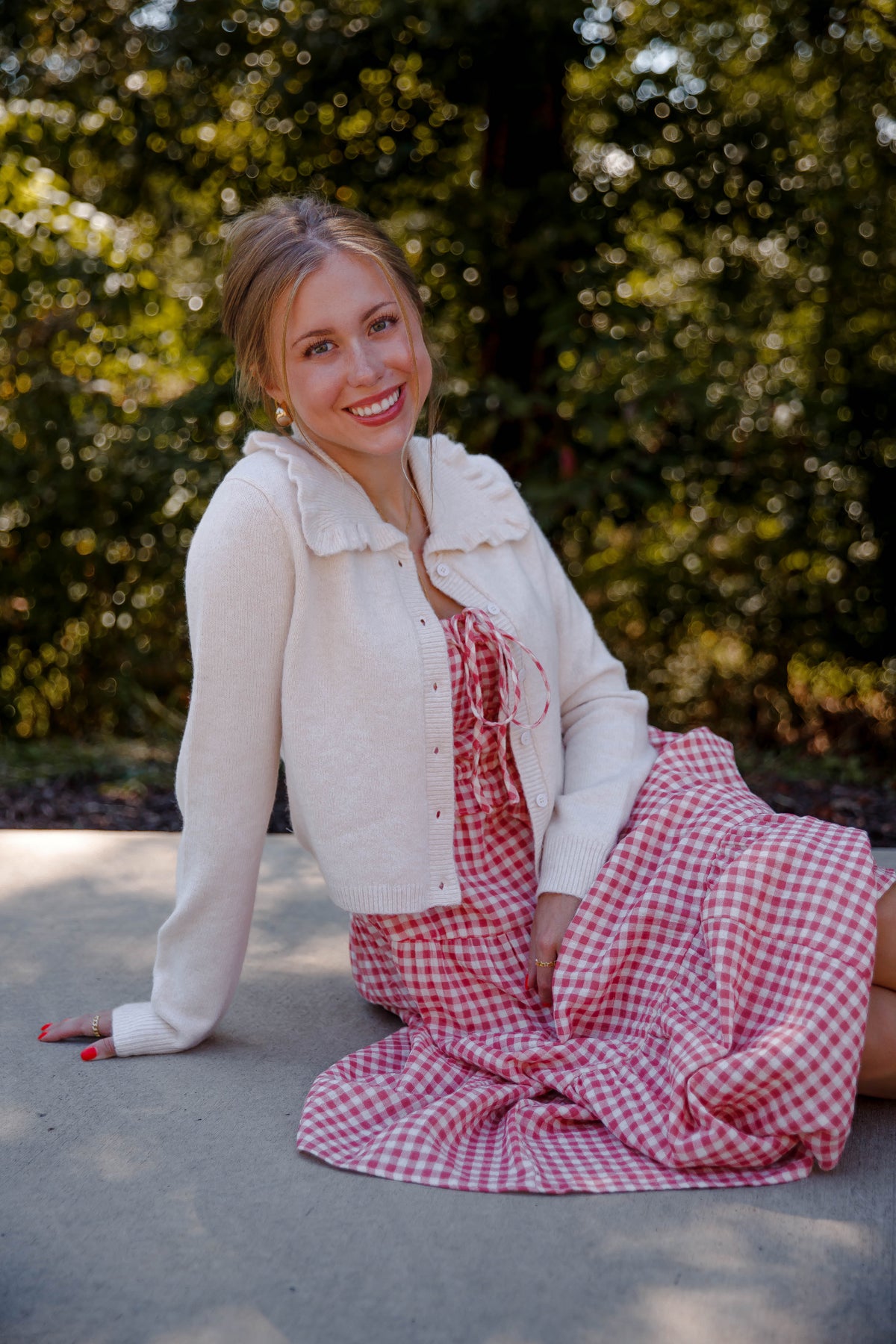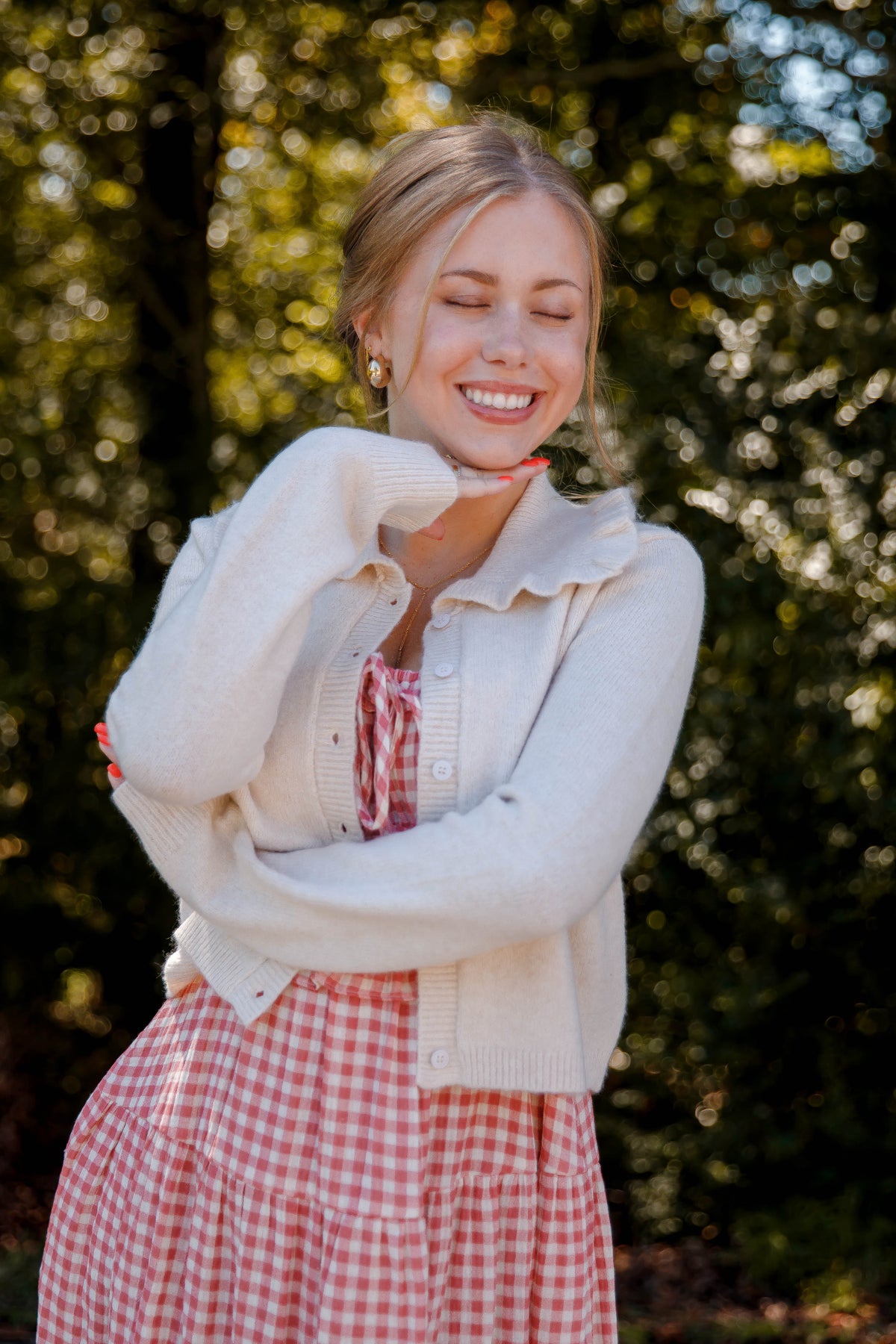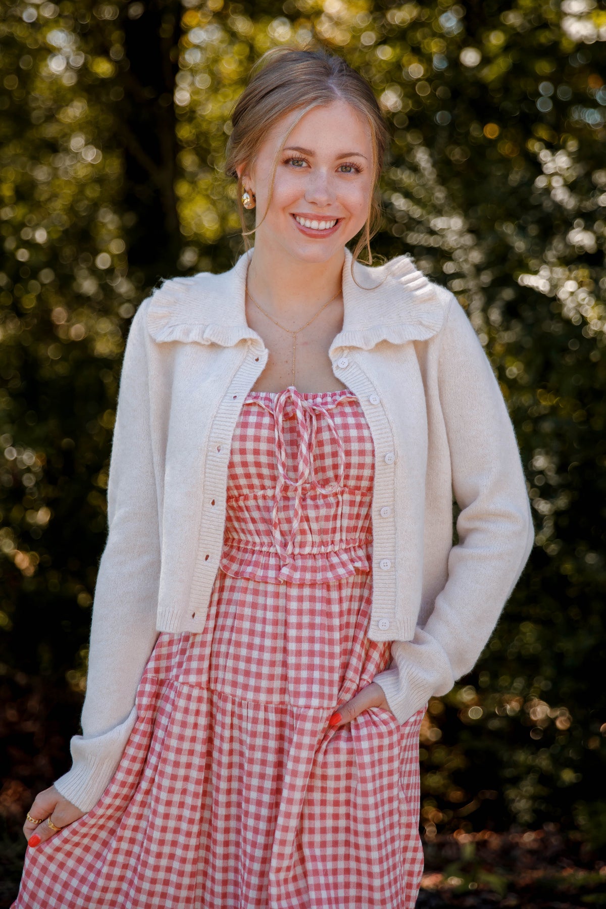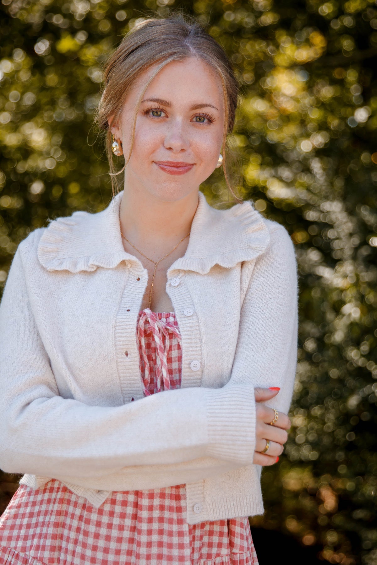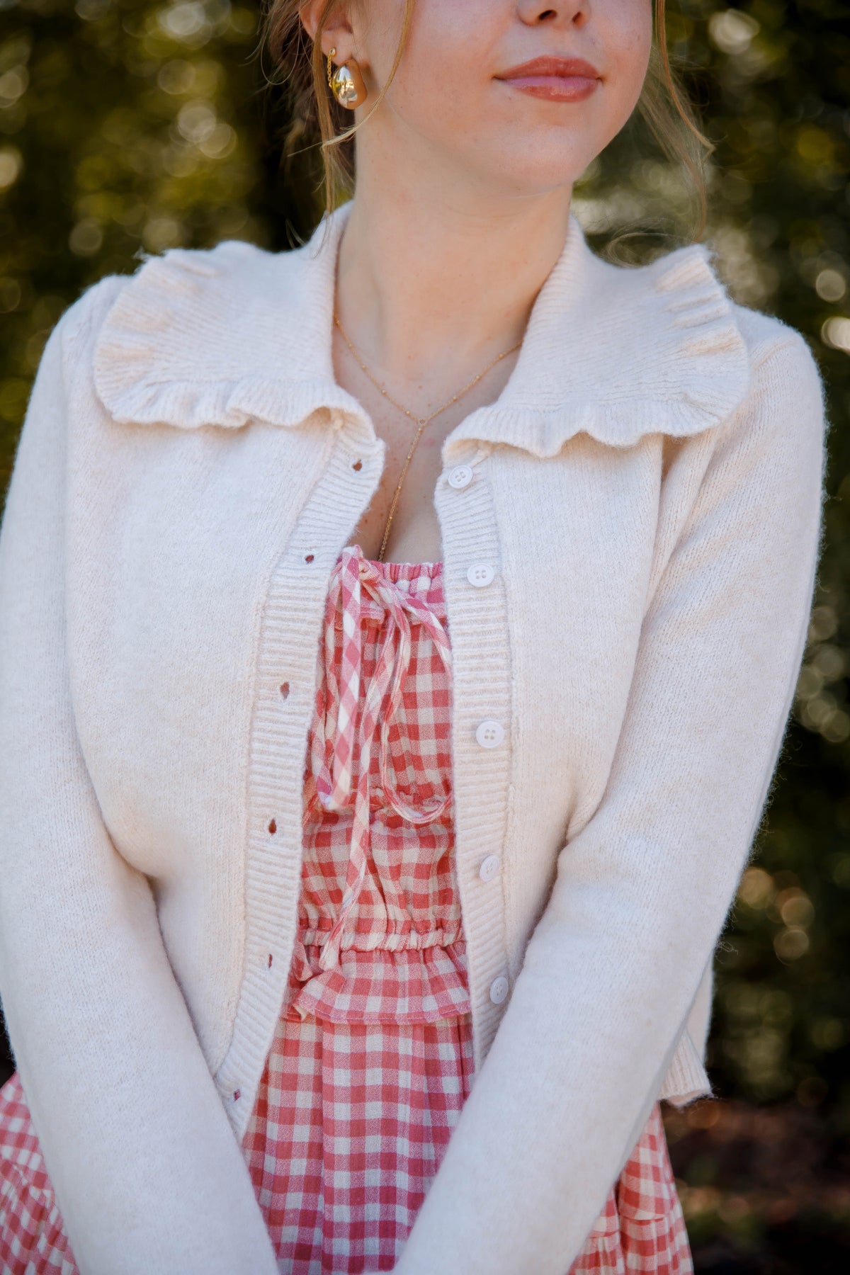 Ruffled Collar Cardigan- Beige Cardigan with Ruffle Collar - Mable Classic Cardigan