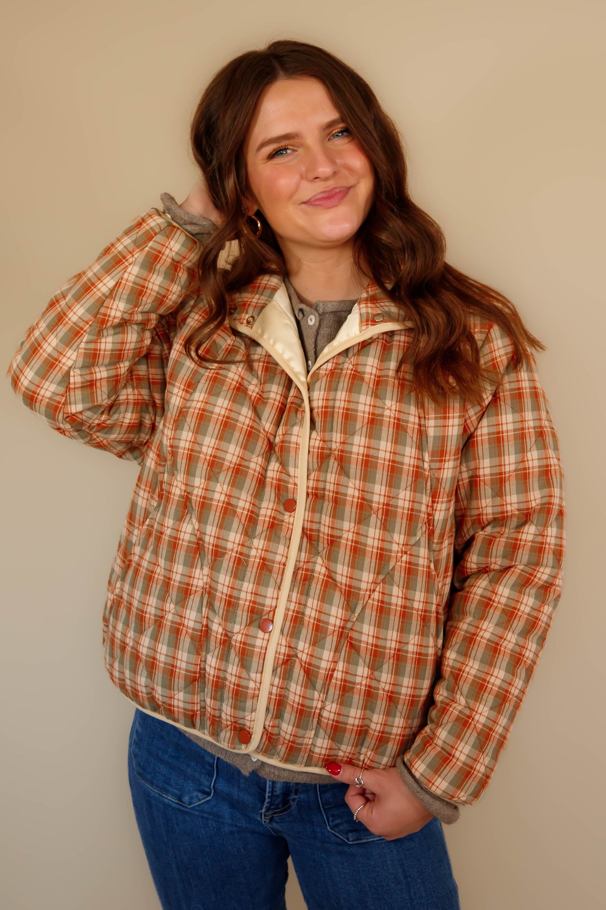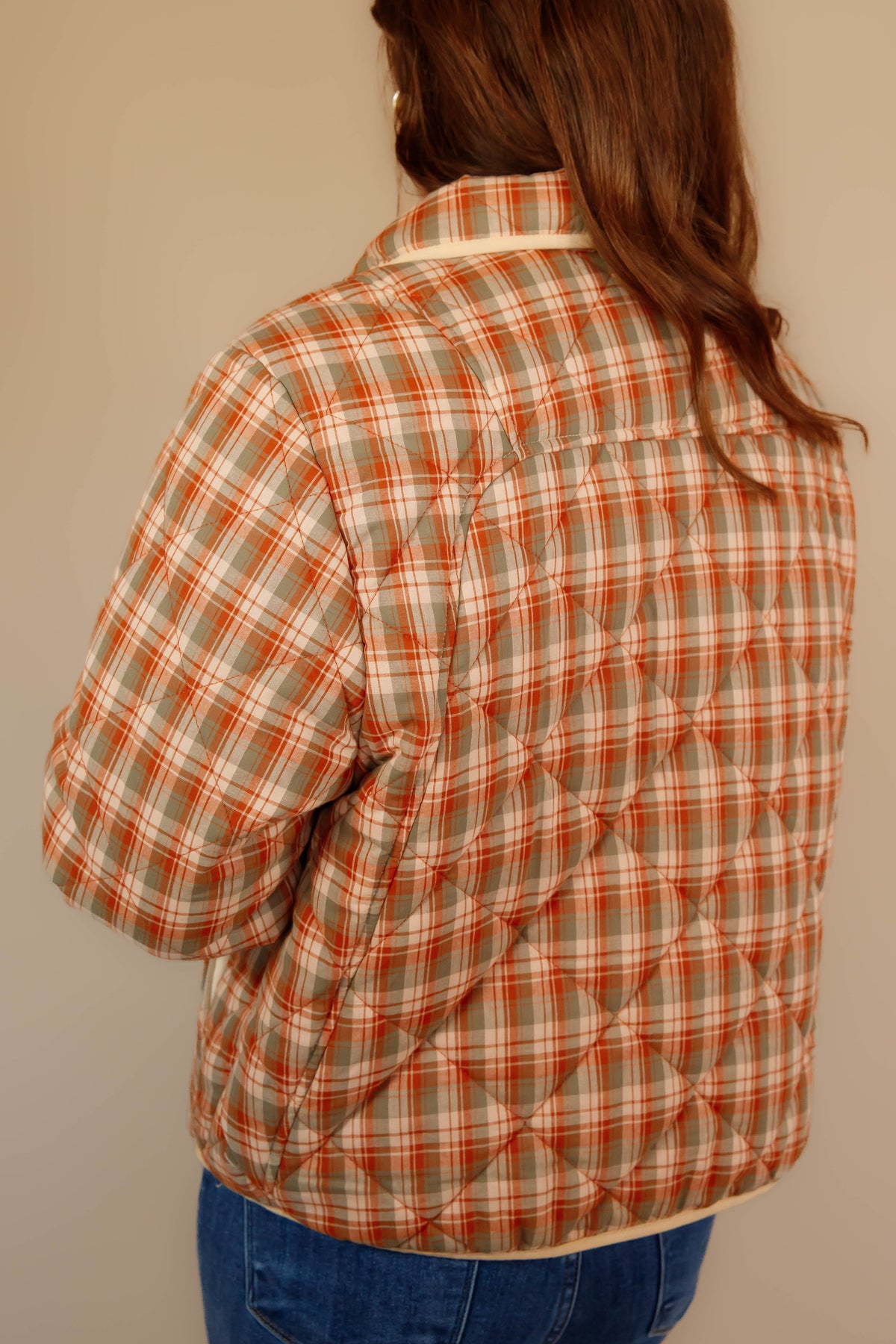Embrace timeless style with this quilted jacket, featuring a charming vintage plaid pattern and refined piping details that elevate any outfit. The slightly oversized silhouette offers comfortable, flattering wear, while practical pockets keep your essentials within reach. Perfect for layering through seasons, this piece combines classic design with modern versatility!