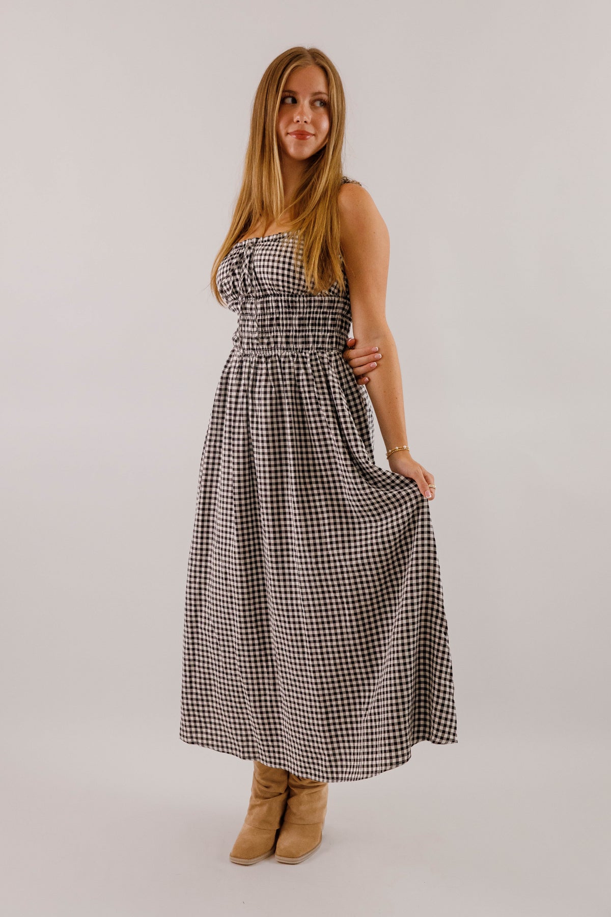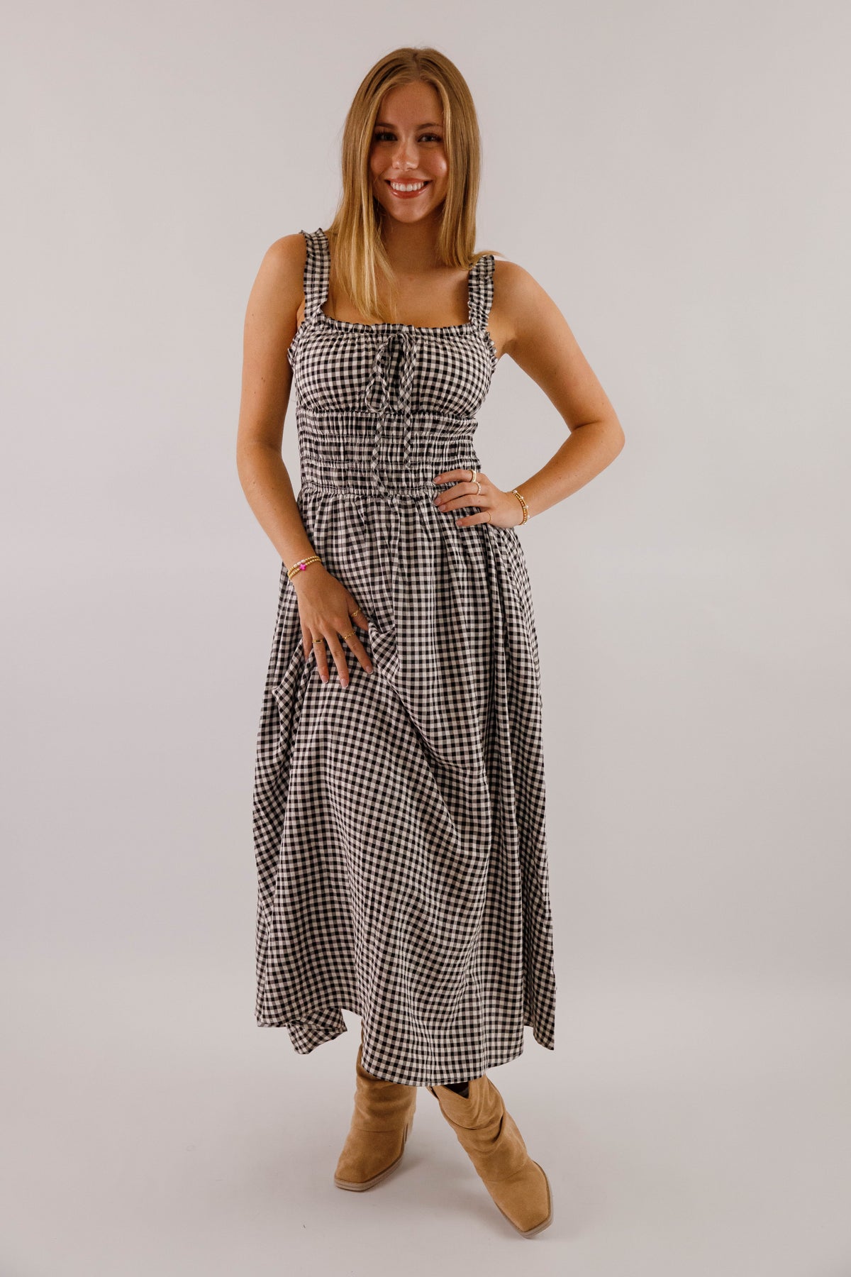 The Challenge Accepted Midi Dress combines charming gingham with thoughtful design details. Thick ruffle-like straps gently flow into the neckline, creating a soft, feminine look. The smocked waist enhances comfort while delivering a flattering, formfitting silhouette. Perfect for effortless style with a touch of texture and elegance!
