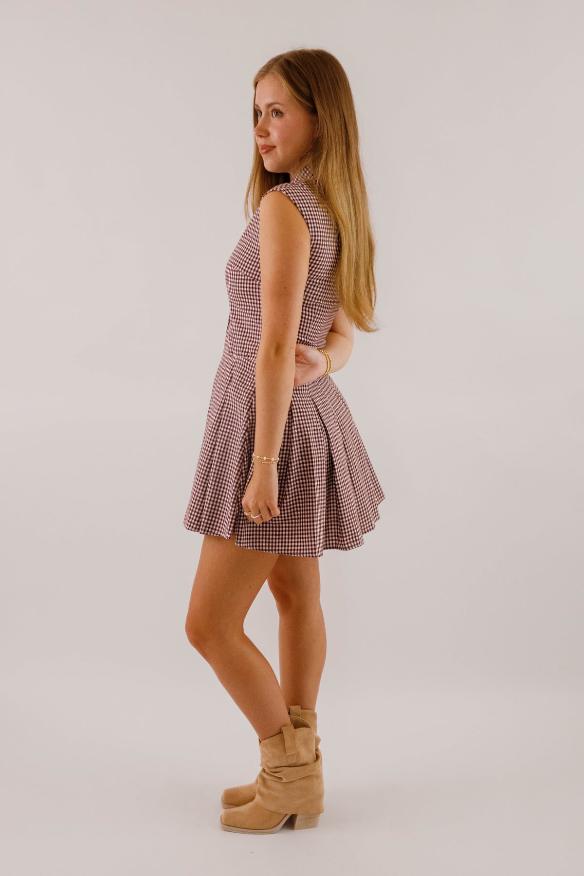 Crafted from a breathable blend of cotton and linen, the Not In My Nature Dress features a classic black and taupe gingham check pattern that adds timeless charm. Its button-down collar and chest buttons create a polished look, while the pleated skater skirt flatters every waistline with a playful, feminine flare. Perfect for any occasion, this dress combines comfort with style effortlessly!