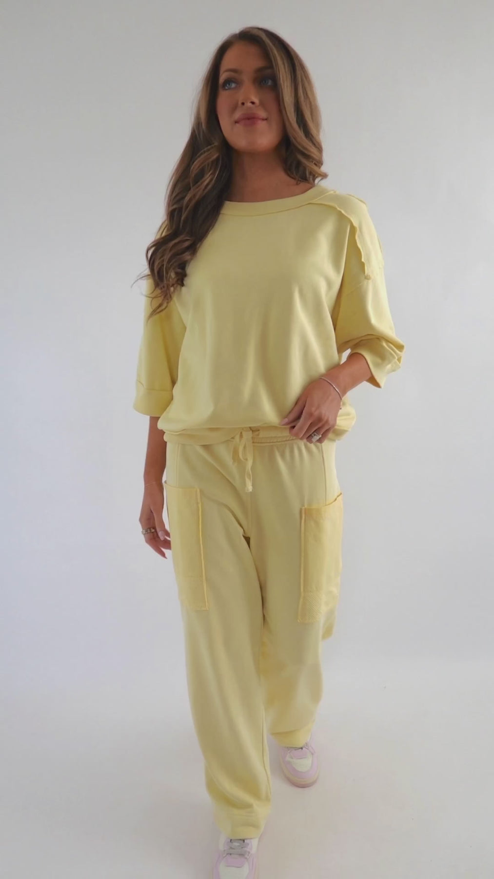 Mineral Washed French Terry Pants – Relaxed  Athleisure Pants- Yellow Rae Mode Athletic Set