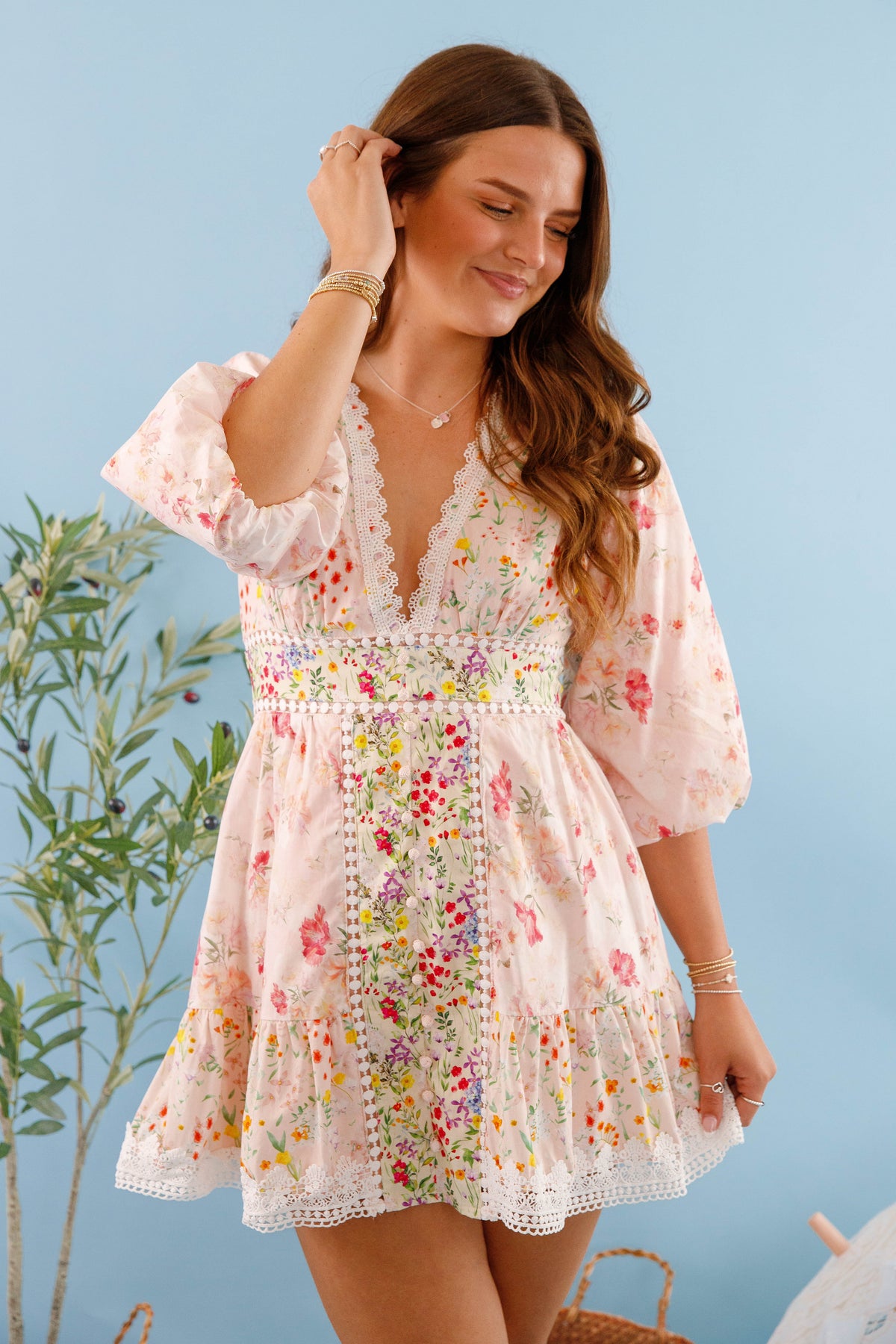 The Rosé Reveire Dress captivates with its romantic deep V-neckline and charming half puff bubble sleeves. Exquisite lace detailing adorns both the hem and neckline, while decorative buttons add a touch of vintage elegance. The flattering fit-and-flare silhouette enhances your natural curves, creating a silhouette that's sure to turn heads at any special occasion!