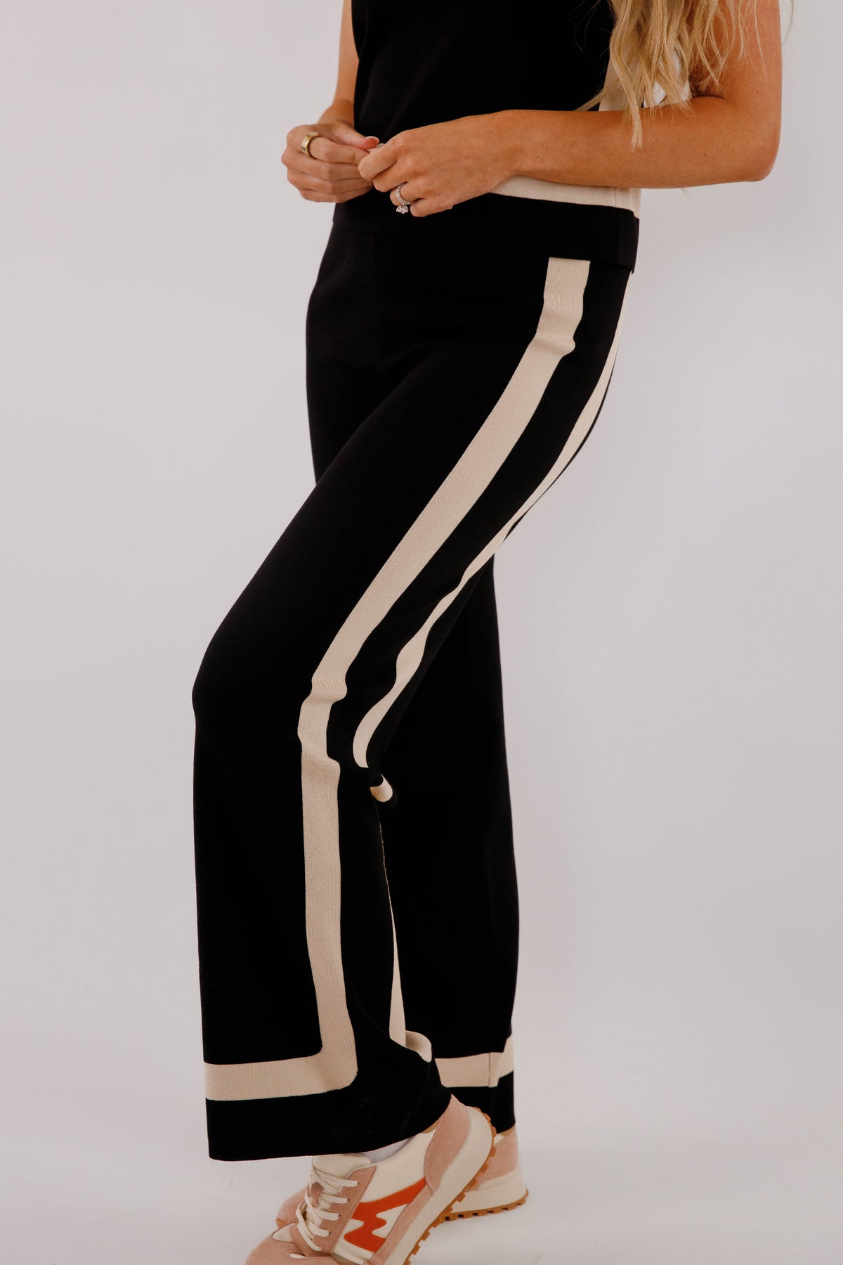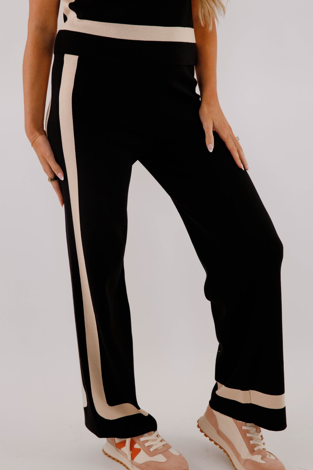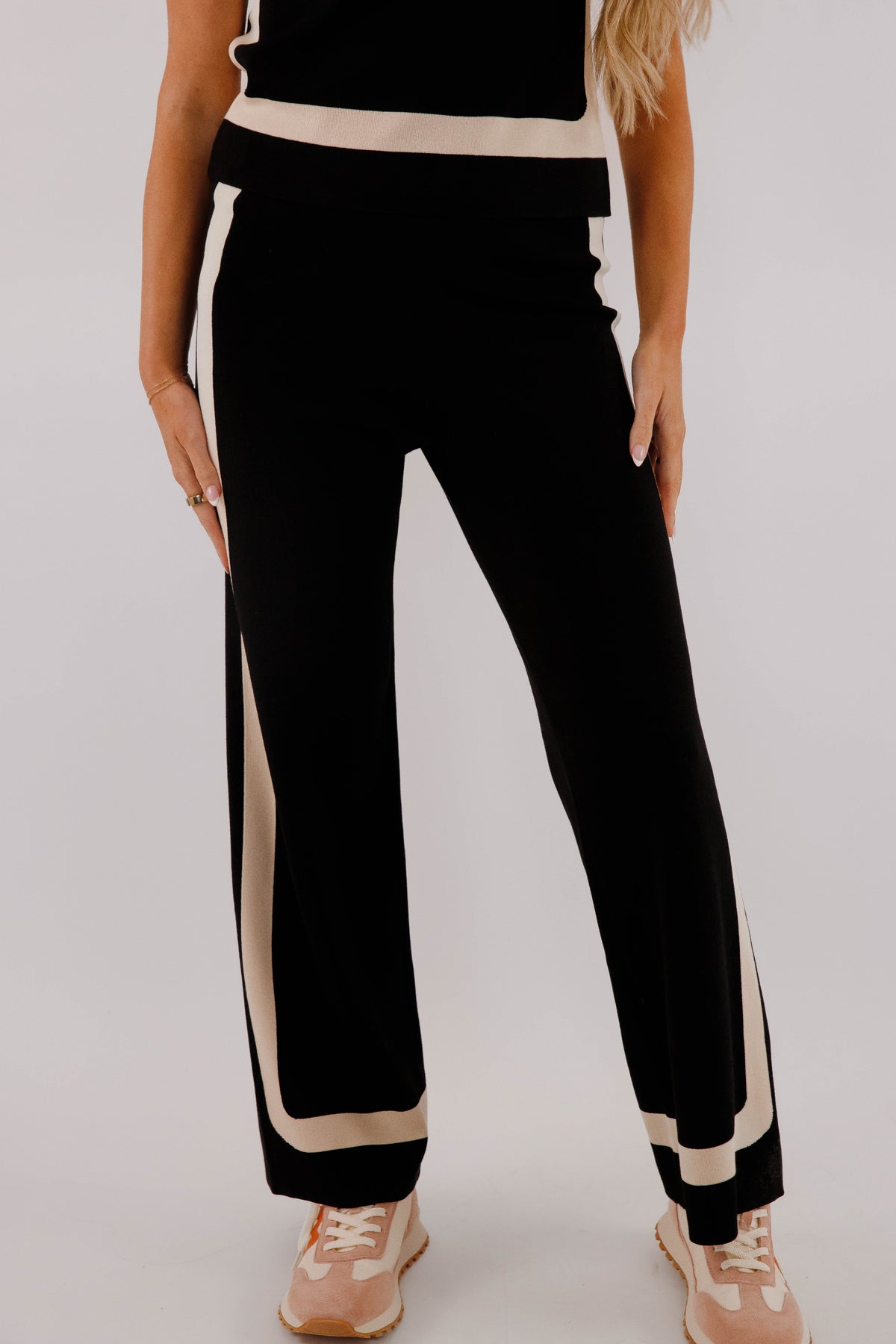 Made from luxuriously soft ribbed fabric, the New Connections Lounge Pants features a chic two-tone black and taupe contrast trim that instantly elevates your style. Its elastic waistband and wide leg cut offers a flattering fit perfect for any of your on or off days. Designed for effortless wear, these pants simplify your wardrobe and keeps you looking polished while traveling or running errands. Embrace comfort and style in one versatile piece.