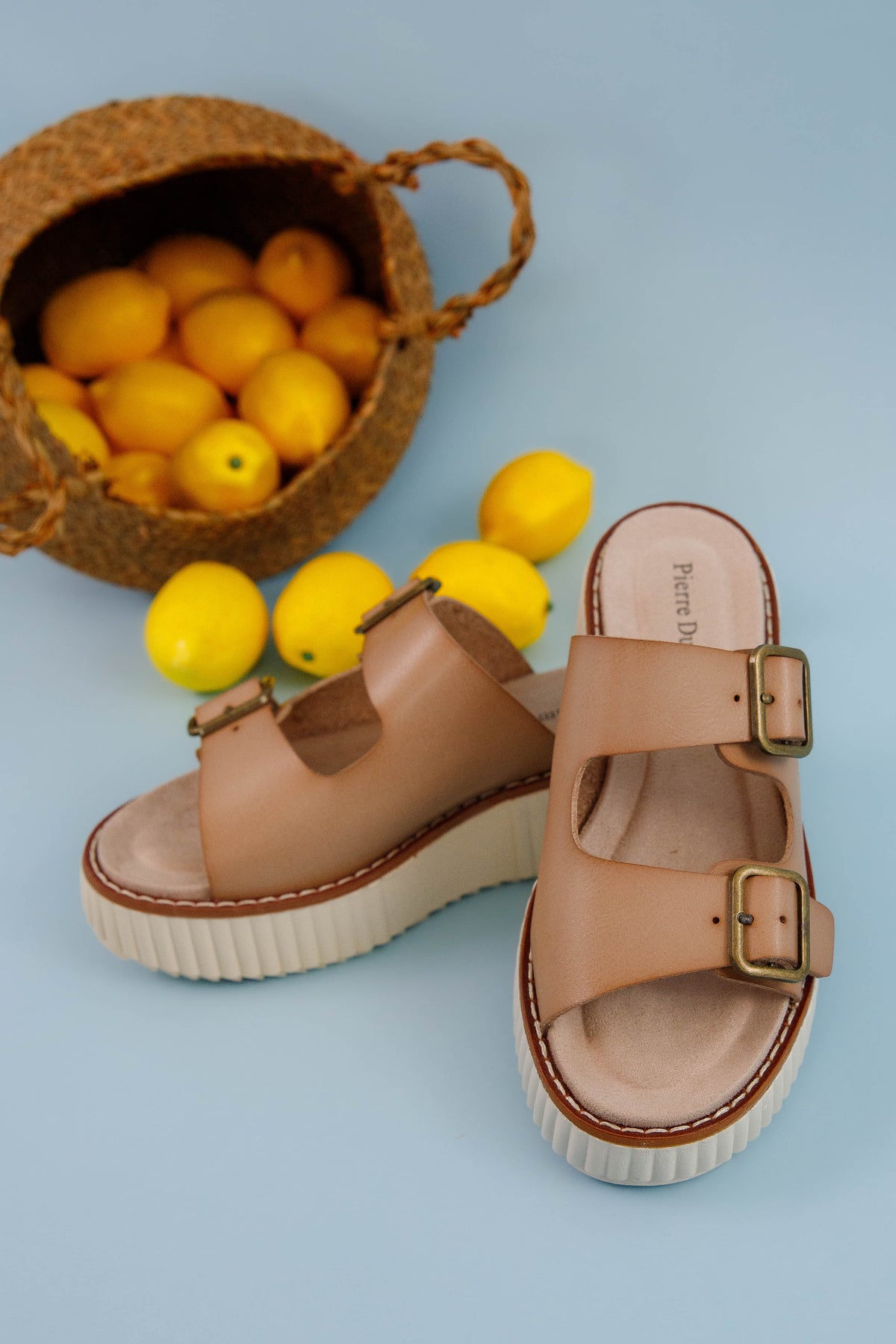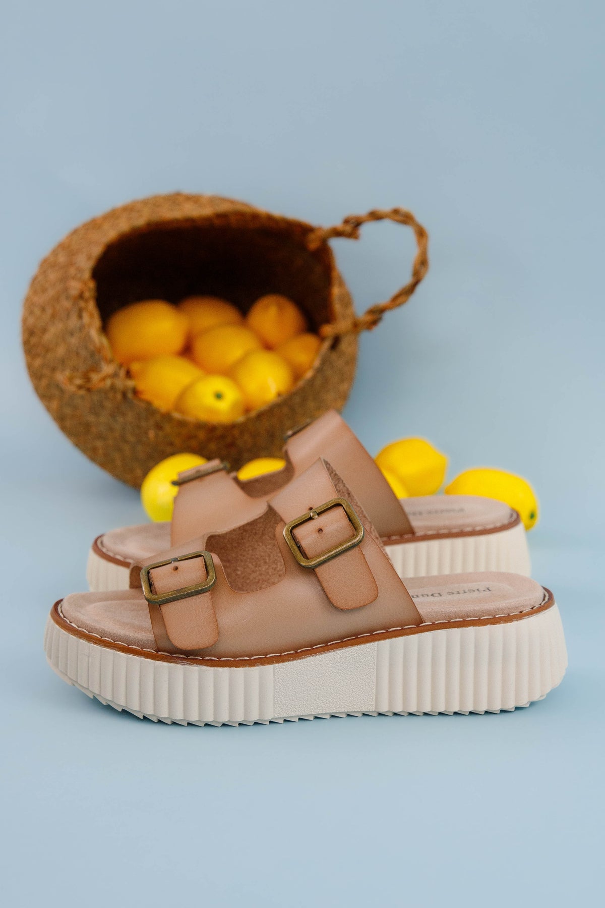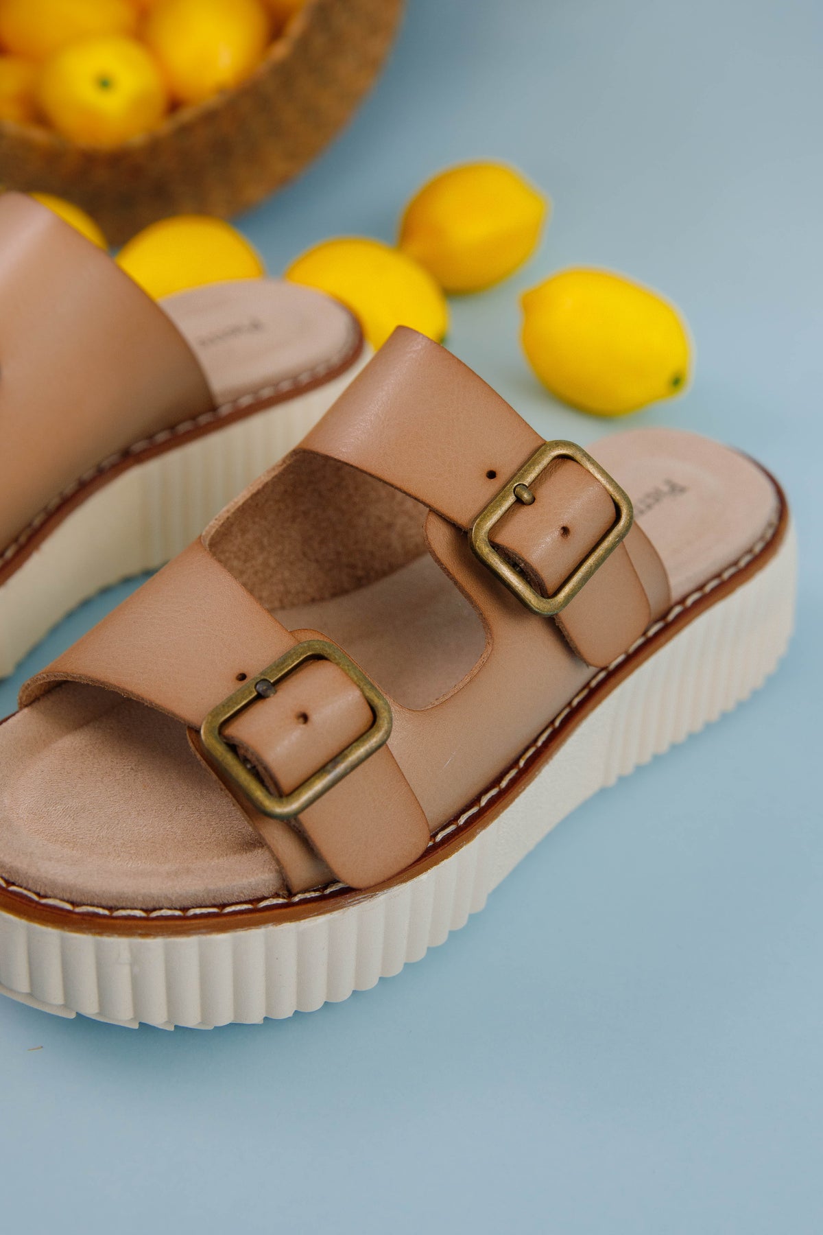 Step into style and comfort with our Cleo Platform Sandals. The cushioned sole provides all-day support while functional buckles ensure a perfect fit. Decorative stitching outlines the sole, adding a distinctive touch to these eye-catching platforms. Elevate your summer wardrobe with these must-have sandals that combine fashion-forward design with practical wearability.