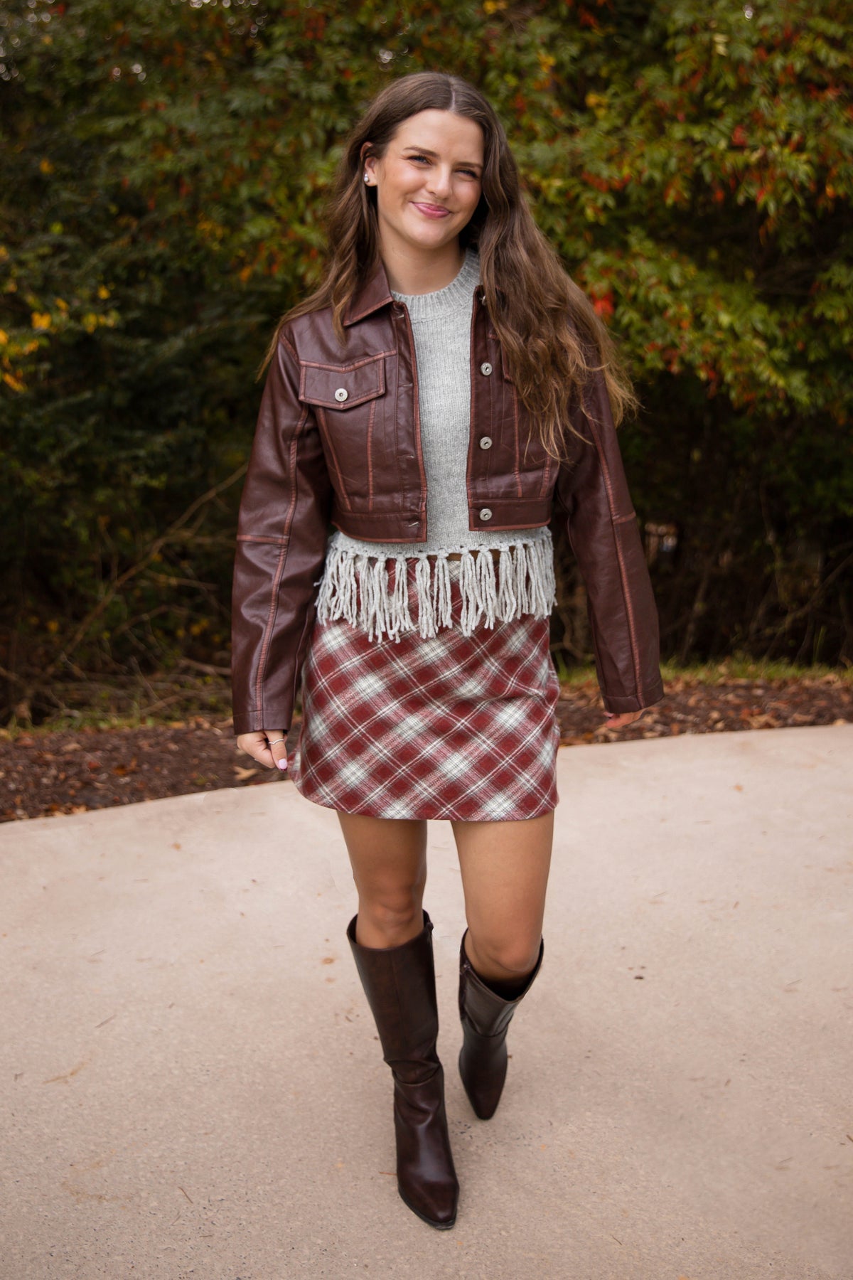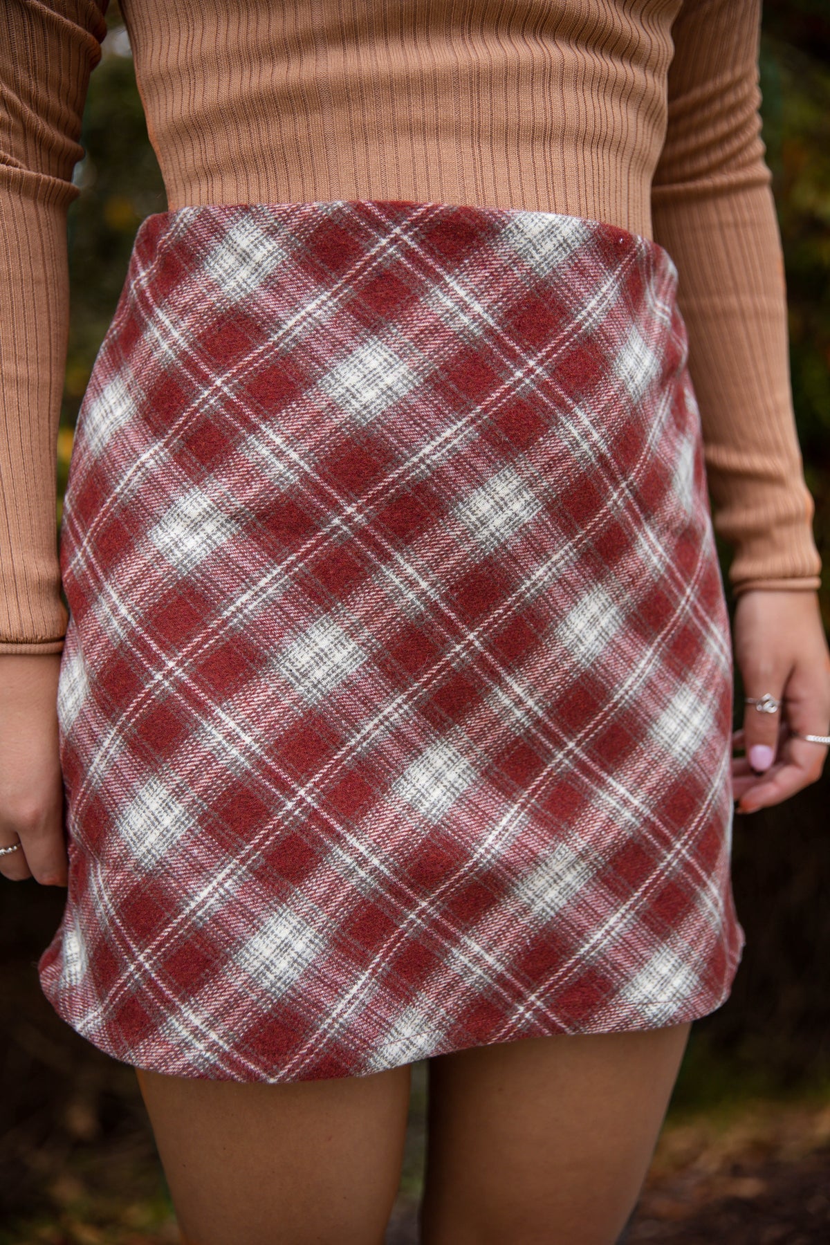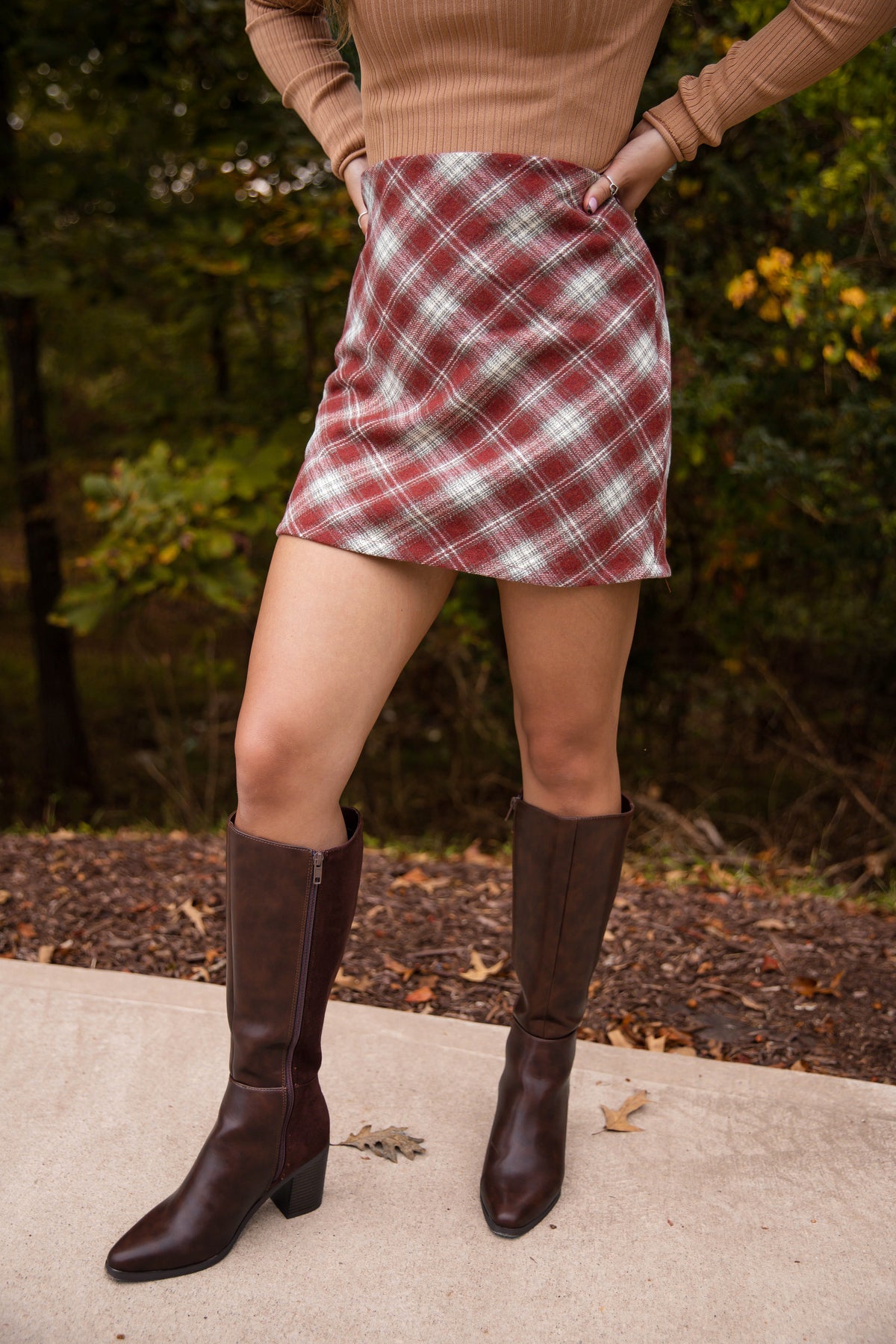 Discover the Meet Me At The Steps Skirt – Maroon Plaid, a classic plaid midi skirt designed for effortless style. Crafted from a structured woven fabric with timeless navy plaid pattern, this skirt offers a flattering A-line fit and gentle pleats. Features a hidden side zipper. Pair it with a crisp white button-down and loafers for polished prep, or with a chunky knit sweater and ankle boots for cozy chic. Add a belt or blazer to dress it up further!