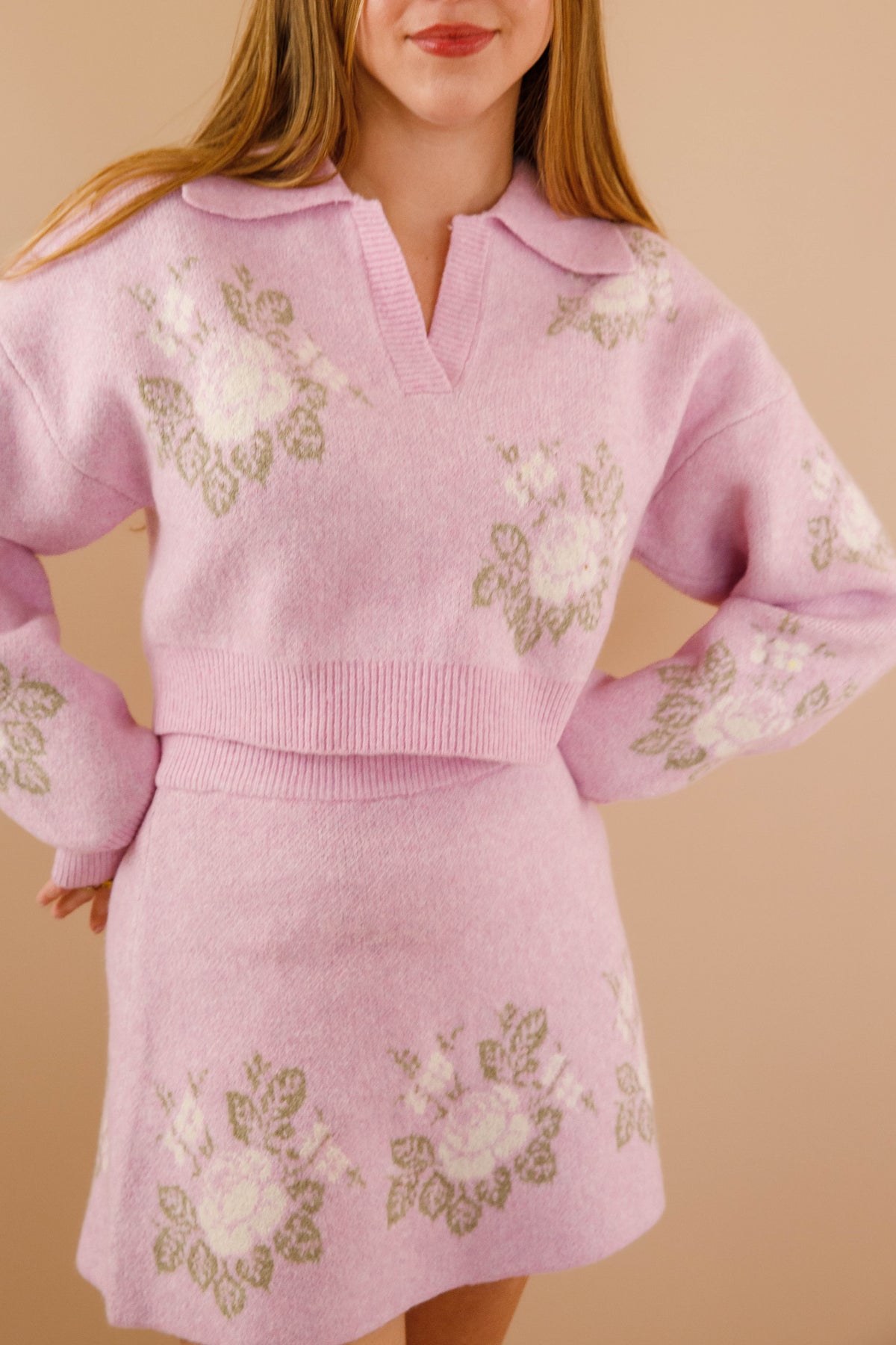 The Blossom Boulevard Cropped Sweater is your answer to effortless style that feels both put-together and genuinely comfortable! Adorned with a graceful floral design in peaceful ivory and sage tones, this knit instantly adds personality to your everyday wardrobe. The charming collared V-neckline features subtle ribbed texture that draws attention upward, while coordinating ribbed cuffs on the long sleeves create a cohesive, intentional finish. Made from soft, unlined knit fabric that moves with you, it offers breathability without sacrificing warmth.