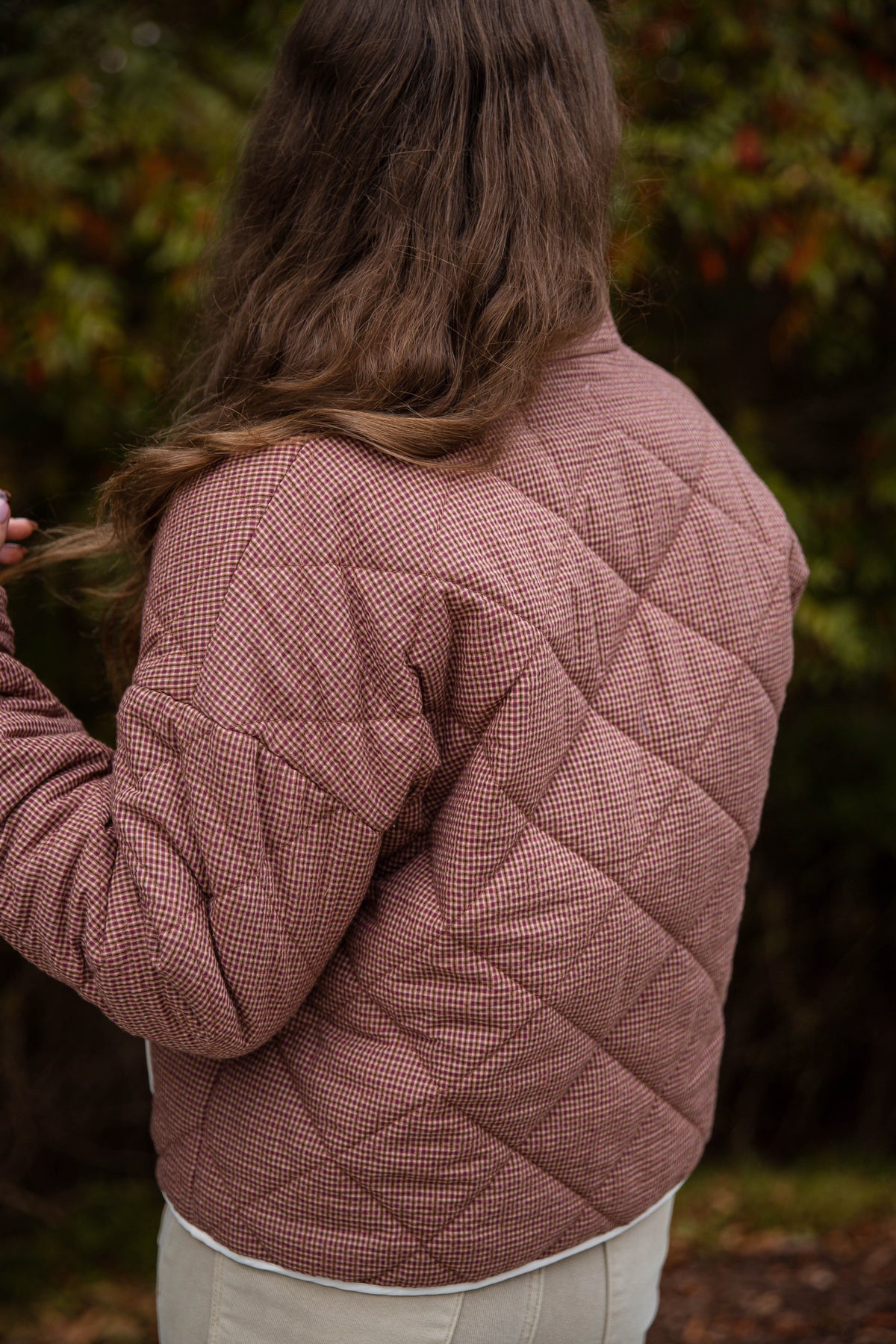 Women’s Quilted Jacket- Micro Plaid Jacket for Women- Lightweight Fall Coat