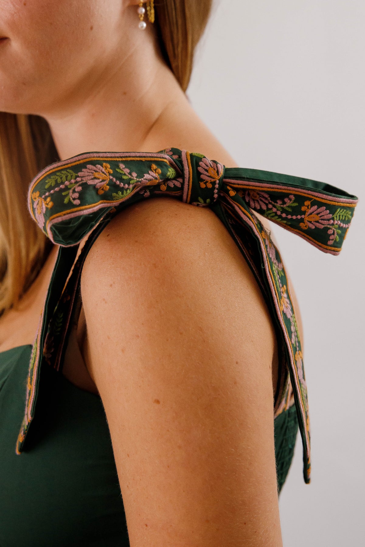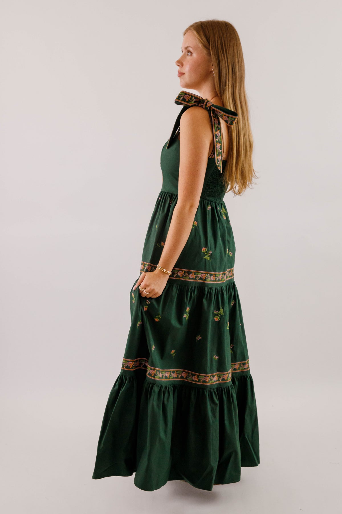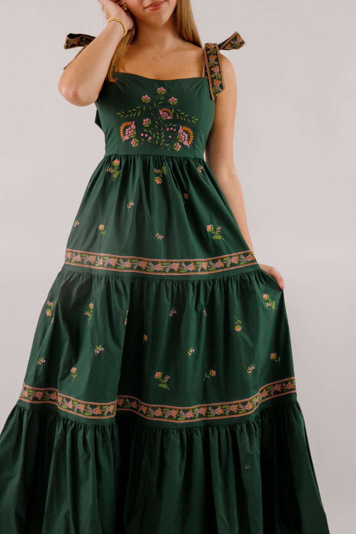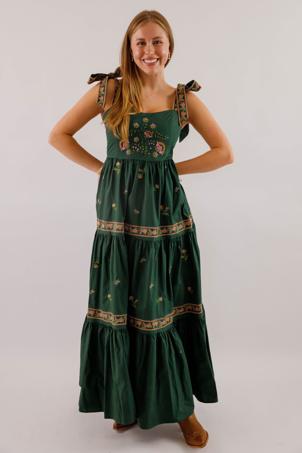 The A Feeling of Gratitude Maxi Dress in hunter green is a playful blend of comfort and style. Tie the embroidered straps to your perfect fit, enjoy the flattering sweetheart neckline, and appreciate the smocked back that moves with you. A hidden back zipper keeps the look sleek, while the detailed embroidery throughout adds a fun, whimsical touch. Perfect for twirling through sunny days or special nights!