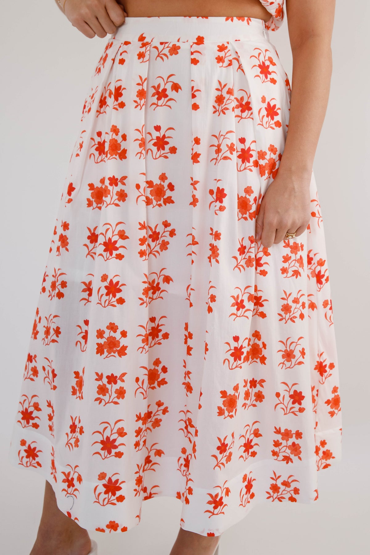 Elevate your everyday style with this enchanting botanical print midi skirt that seamlessly blends sophistication with comfort. The graceful pleated detailing creates flattering movement and dimension, while the convenient side zipper ensures an effortless fit. An elasticated back waistband provides all-day comfort without compromising on silhouette, and practical side pockets keep your essentials within reach. Perfect for transitioning from office to weekend adventures, this versatile piece becomes an instant wardrobe essential that works as hard as you do.